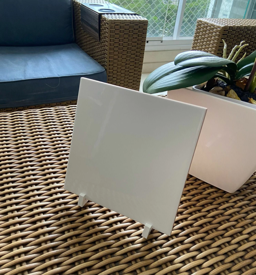 Descrição: Azulejo brilhante 15x15 com dois suportes de plástico.