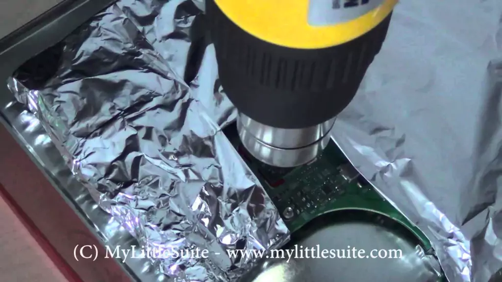 Fita adesiva de alumínio para reparos em placas de circuito impresso, garantindo a preservação do entorno da área à ser aquecida.